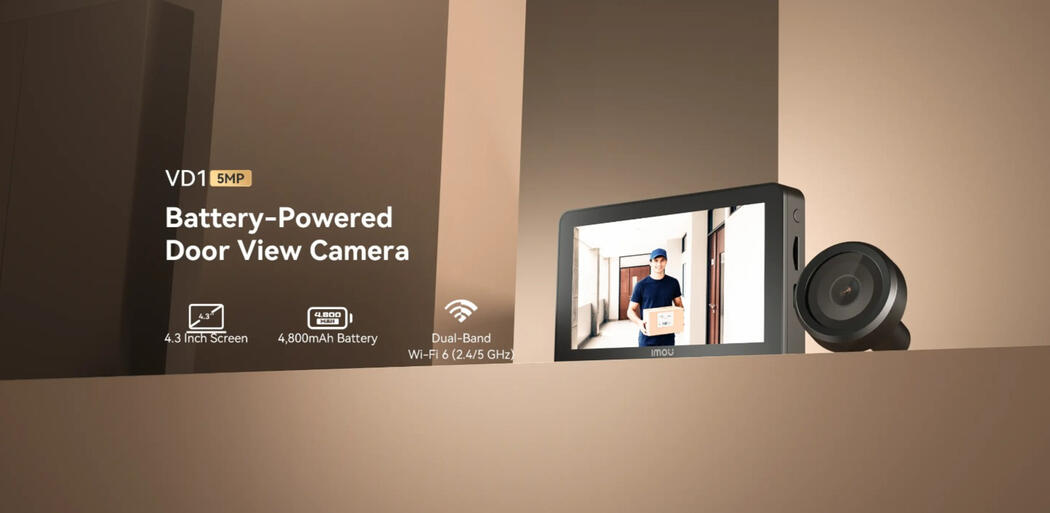 Imou VD1 door view camera features 5MP video, 4.3-inch display, 4800mAh battery power, dual-band Wi-Fi 6 connectivity for homes.πͺπ·