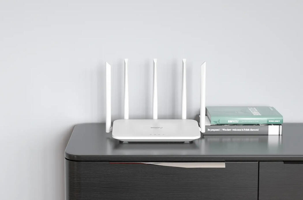 Imou AC1200 HR12F router offers dual-band speeds, four high-gain antennas, guest network support, multiple ports, optimized channel for smooth camera streaming.